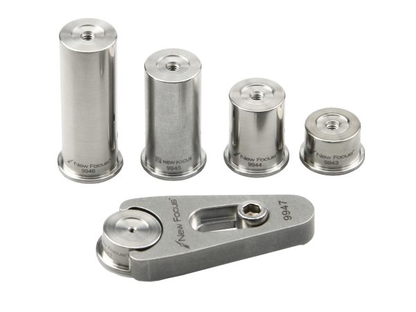 Our 0.7 in. Optical Pedestals system offers a compact alternative to conventional-sized fixed pedestals, with a solid stainless-steel construction for sturdy mounting. The pedestal system is compatible with all Newport's mounts, including the New Focus Tiny™ Mounts. The four tallest pedestals available have an 8-32 (or M4) threaded hole in each end for mounting optics components or combining posts. Model 9942 (M-9942 for metric) has a 2-56 (M2) threaded hole in one end and an 8-32 (M4) threaded hole on the other to accommodate the Tiny Mount Series.