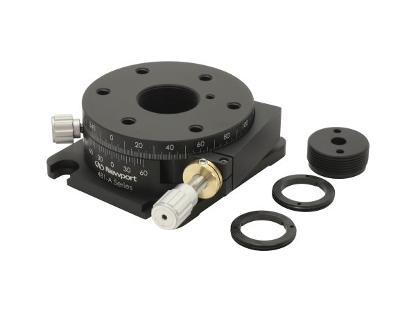 The 481 Series Rotation Stages feature 1.063"-20 threaded central aperture which allows secure mounting of 1.0 in. optic such as waveplates and polarizers using included retaining rings, 0.5 in. optic in