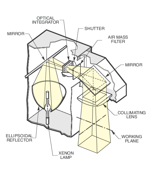 - Modifies the spectral output of an arc lamp to match solar conditions