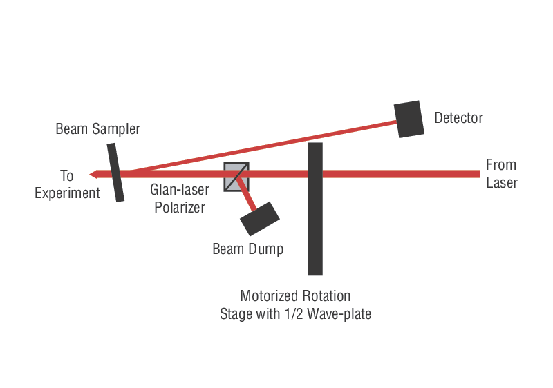 Our computer controlled variable attenuator kit is an easy to use kit for the continuous, automatic attenuation of the laser output power. It is based on the combination of a ½ wave-plate and polarizer. The algorithm used to control power operates in a closed loop with PID (proportional, integral, derivative) feedback, compensating for slow changes in output power.
