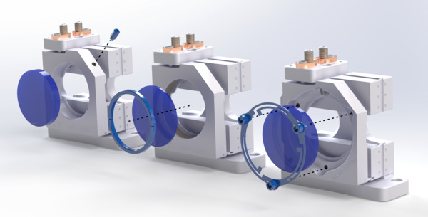 Top Adjust Flexure Mounts with Bi-Directional Clear Edge support optics in 0.5 inch, 0.75 inch, and 1.0 inch diameters, each tailored to accommodate different beam sizes. At a 45 degree angle of incidence, the maximum supported beam diameters are 3.2 mm, 6 mm, and 9 mm respectively. This range enables seamless integration into both compact and mid-scale optical systems, offering flexibility for diverse design requirements.