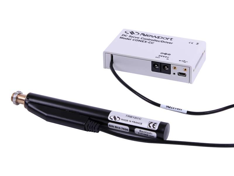Newport also offers versions of the DC servo motor linear actuators with integrated CONEX motion controller. For out-of-the box control, the CONEX controller is preconfigured and delivered with the TRB-CC actuator.