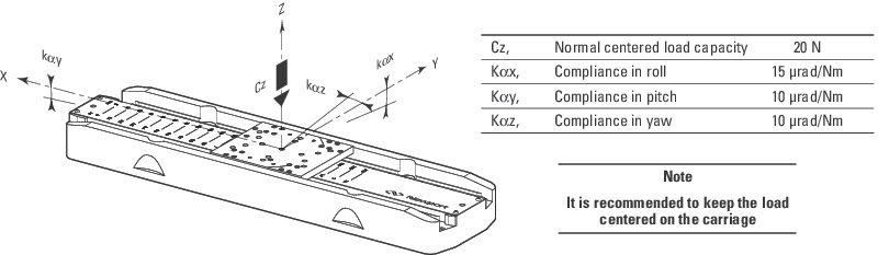 The DL stage has been designed to be mounted on standard breadboards (with a 0.2 mm flatness). Pads minimize the effect of the table on the pitch, yaw and roll performance of the stage. To reach the specifications stated, stages must be fixed on a plane surface with a flatness of 5 μm with washer under each fixing screw head (max. tightening torque for mounting screws: 3 Nm).