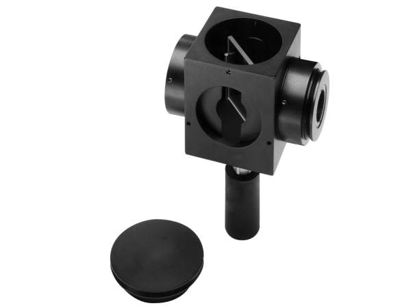The 78150 beam splitter Holder is used to position a 2 inch [51 mm] square beam splitter or reflector at a 45° angle in an enclosed optical system. Accessing the interior compartment is done from a port located on top of the beam splitter holder. Installing and removing a reflector is an economical and simple method for redirecting the beam path. Beam splitters are generally used with collimated light. If the application requires converging or diverging light at the input or output, the 78150 includes two lens holders, which position 1.5 inch [38 mm] diameter lenses in the optical path. The distance from the lens to the beam splitter is 1.5 inches [38 mm]. The clear aperture of the lens holder is 1.2 inches [30 mm].The 78150 adjusts to fit a beam splitter or mirror up to 0.25 inch [6 mm] thick. The 78150 features four standard Oriel® 1.5-inch series female flanges and includes a double male coupling ring, allowing it to couple to a variety of Oriel accessories and instruments. With four ports, the 78150 can be positioned so that the split or redirected beam can be directed where needed. Two #1/4-20 threaded holes allow the 78150 to be rod mounted, if flange mounting is not desired. Rod mounting also provides extra support when coupling to the flanges.