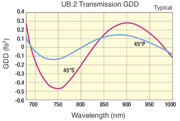 The UB.2 beamsplitters are used to evenly divide S polarized light at 45° angle of incidence from 700–950 nm, ideal for output from the Spectra Physics Tsunami® Ultrafast lasers. The back surface has an antireflection coating to minimize surface reflection losses and eliminate ghost images.