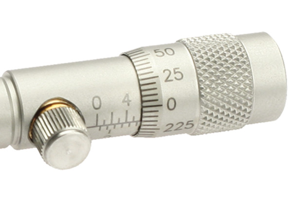 The HR-13 Lockable High-Resolution Micrometers has 0.25 mm pitch threads (over 100 TPI), providing twice the sensitivity of standard SM Series Micrometers. These fine threads allow 0.5 μm sensitivity with direct position readout in 5 μm graduations. The HR-13 is recommended for applications requiring sensitive 13 mm positioning, as well as accurate position readout. The HR Series Micrometers have a novel thumbscrew locking mechanism that clamps a non-threaded portion of the screw from all sides. This stress-balanced design secures the position with negligible displacement during locking.