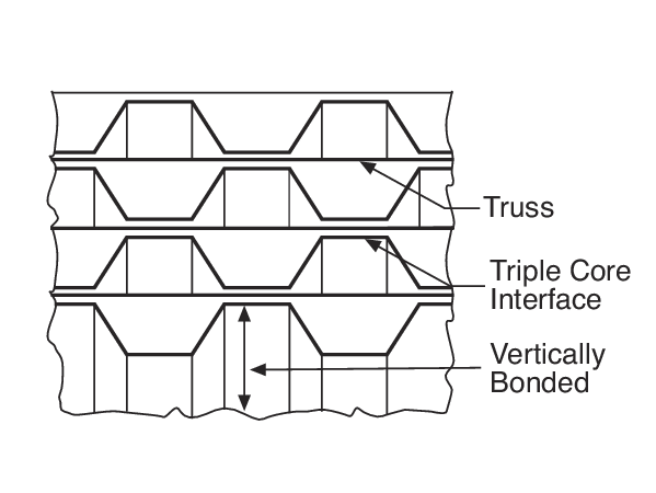 Trussed honeycomb, vertically bonded closed cell construction, 0.25 mm Steel sheet materials, 0.76 mm triple core interface
