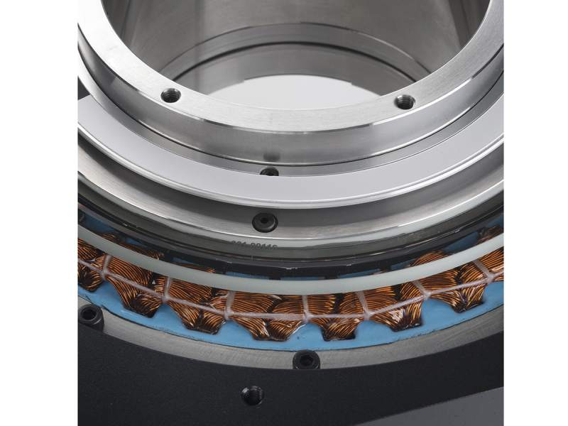 With direct-drive technology, the RGV series offers superior speeds and enhanced positioning. A high efficiency, brushless DC torque motor with rare earth magnets supplies an optimum ratio of torque per inertia for high acceleration. The non-contact direct-drive motor does not wear and introduces only minimal stage heating, with the temperature of the motor increasing by just 30°C at maximum continuous torque.