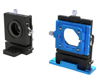 In this example, on the left is a standard LP-1B Precision Lens Positioner.  On the right is a customized beam expander mount offering adjustable 50–55 mm clamping and a more robust internal design for long-term stability under cantilevered loads. Its widened base simplifies integration into compact systems and minimizes the overall mounting area.
